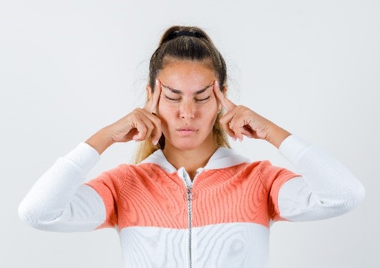 Masaje de las órbitas de los ojos. Con los pulgares presione suavemente el hueso debajo de las cejas desde la nariz hasta la sien con movimientos circulares y los ojos cerrados.