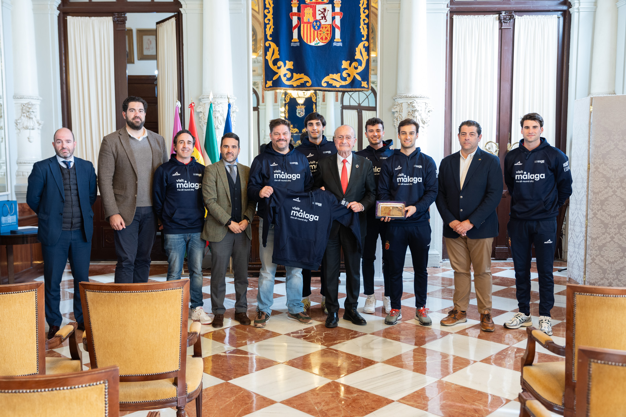 El alcalde de Málaga, Francisco de la Torre, acompañado por los concejales delegados de Turismo y Promoción de la Ciudad, Jacobo Florido, y de Deporte, Borja Vivas, ha recibido al entrenador, Max Caldas, jugadores y staff de la Selección Española de Hockey antes de afrontar los encuentros de la Pro League de febrero que tendrán lugar en Australia e India. En estos encuentros, la Selección lucirá la marca de la ciudad con el mensaje ‘visit Málaga’ en sus camisetas y equipación, en una acción innovadora en la estrategia municipal de promoción turística internacional y que apunta a mercados de alto poder adquisitivo de Asia y Oceanía, de acuerdo con los objetivos del próximo Plan Estratégico de Turismo 2025-2028. El combinado nacional se concentra en estos días en la provincia de Málaga y jugará dos partidos amistosos contra Inglaterra este próximo fin de semana.