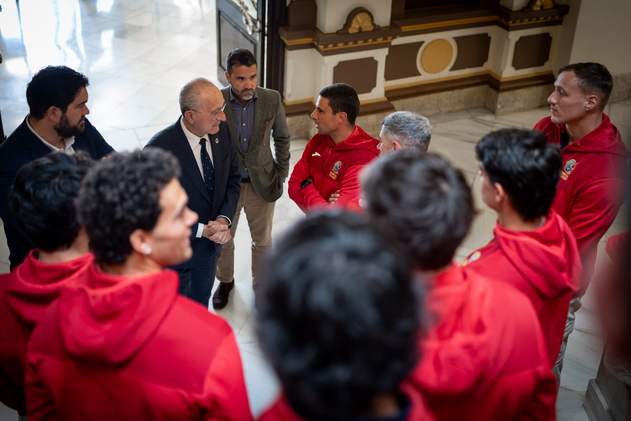 El alcalde de Málaga, Francisco de la Torre, junto a los concejales delegados de Deporte y Turismo, Borja Vivas y Jacobo Florido, respectivamente, ha recibido a los jugadores y al cuerpo técnico de la selección española de Seven, modalidad olímpica de rugby. Actualmente, los deportistas se encuentran entrenando en el Estadio de Atletismo ‘Ciudad deMálaga’.