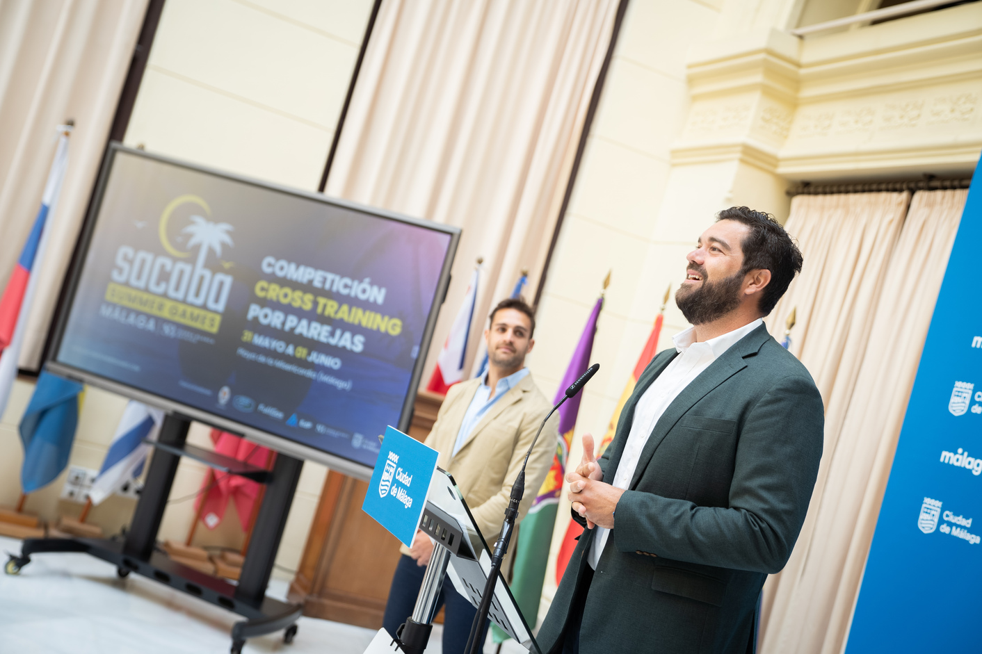 Los concejales delegados de Deporte y de Servicios Operativos, Playas y Fiestas, Borja Vivas y Teresa Porras, respectivamente, han asistido a la presentación de la primera edición de ‘Sacaba Summer Games 2025’, que tendrá lugar el fin de semana del 31 de mayo y 1 de junio en la playa de La Misericordia, en el distrito Carretera de Cádiz. También han asistido los representantes de la organización de la competición Fernando García Pulido e Isidro Pisabarro Heredia.