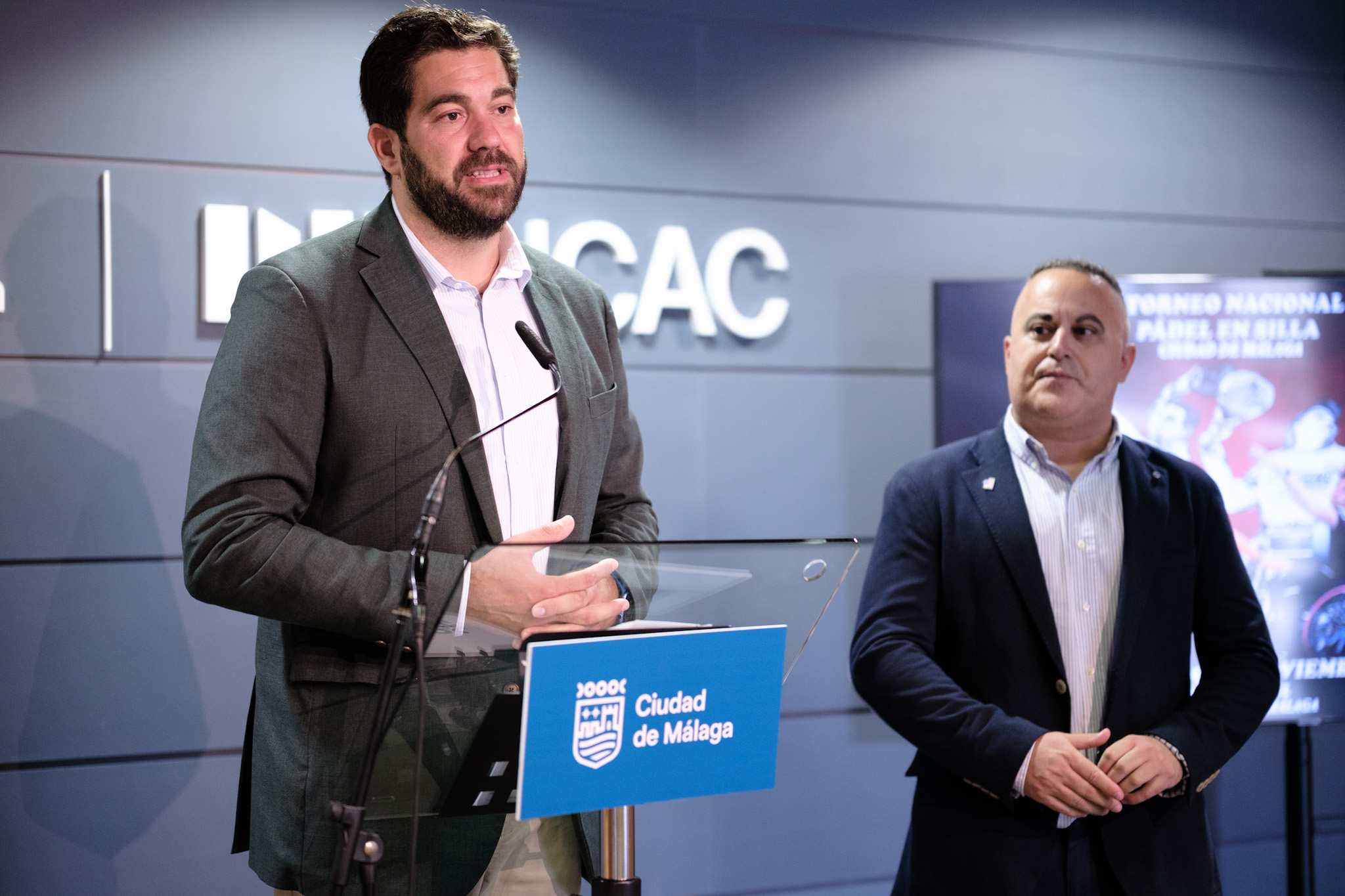 El próximo fin de semana, del 7 al 9 de noviembre, se celebra el I Torneo Nacional de Pádel en silla ‘Ciudad de Málaga’. La prueba tendrá lugar en el centro deportivo Vals Spot El Cónsul y está organizada por el Club Deportivo Masdepádel y cuenta con el patrocinio del Ayuntamiento de Málaga. El concejal delegado de Deporte, Borja Vivas, junto al director y coordinador del CD Masdepádel, José Antonio Castro Rodríguez; y la vicepresidenta de Competición de la Federación Andaluza de Pádel, Nayra Ramírez, ha presentado la prueba deportiva.